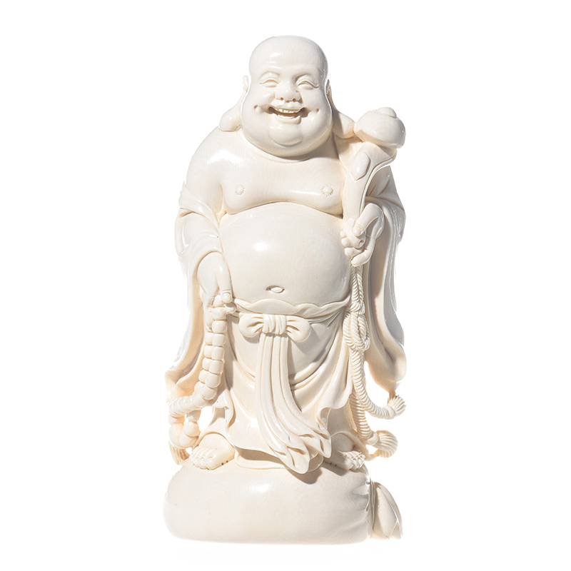 【彌勒擺件】天然西伯利亞猛犸牙大師手雕彌勒擺件