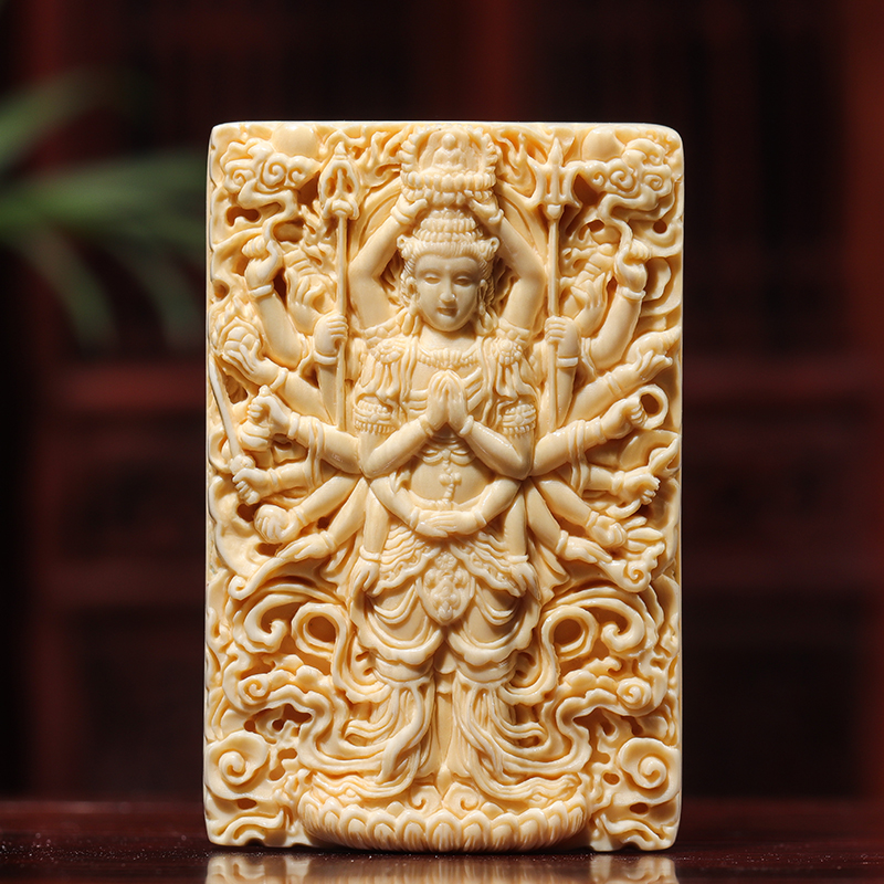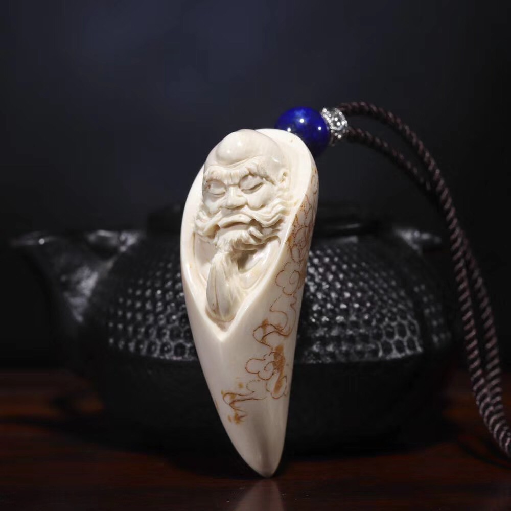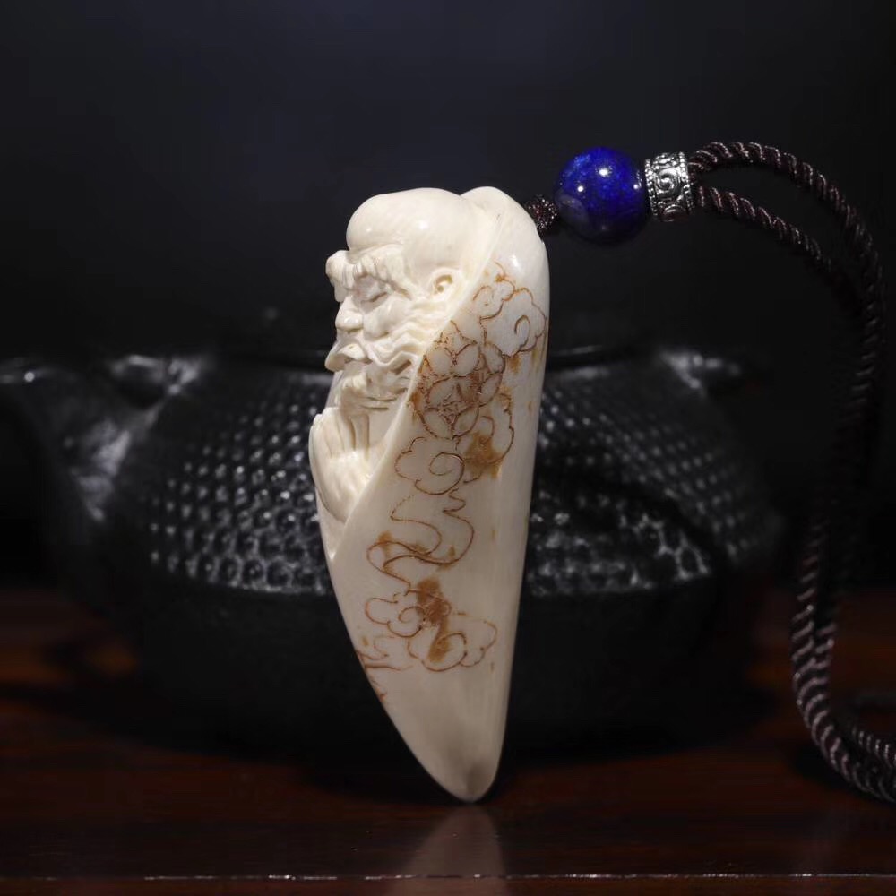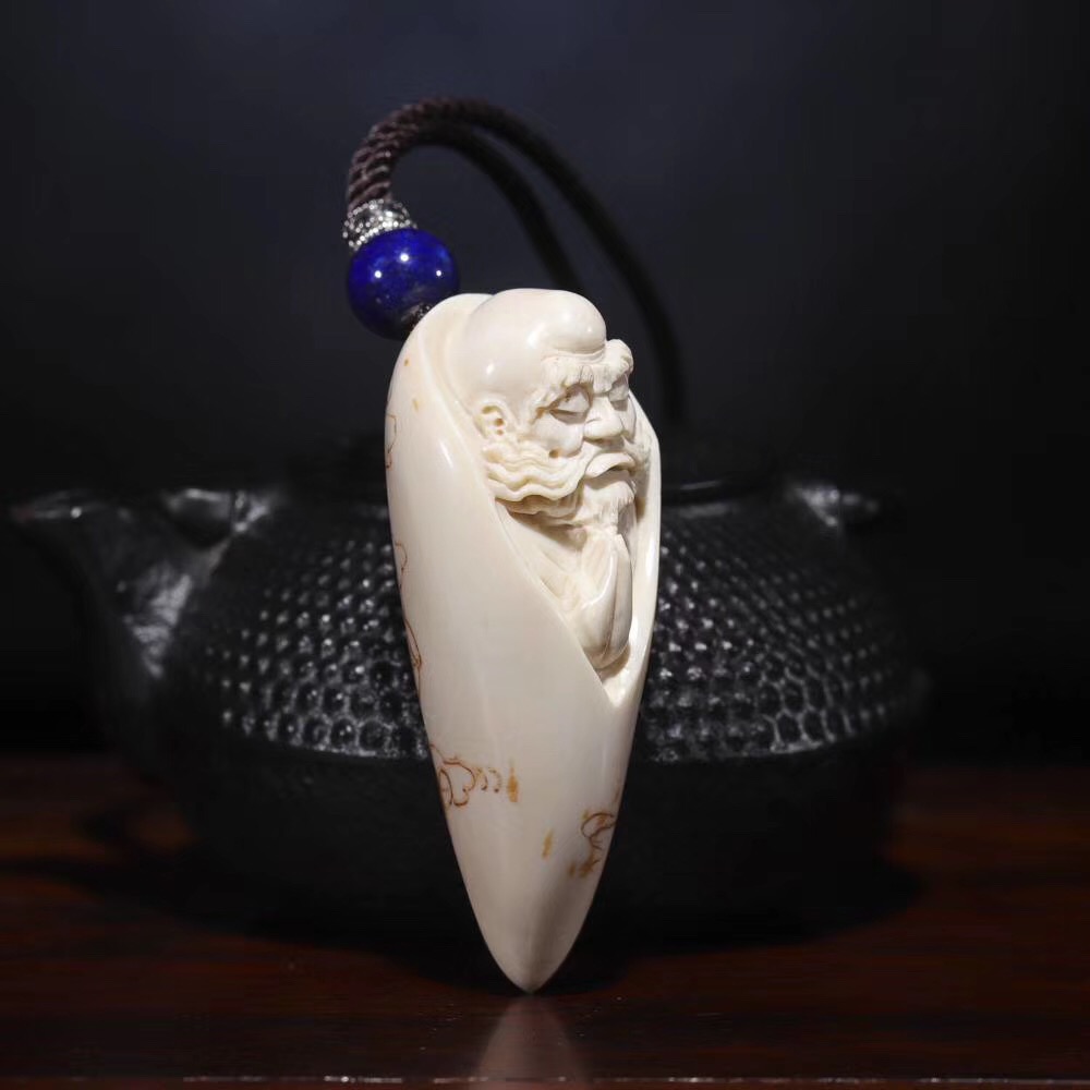 【猛犸牙雕作品】《達摩牙尖》精選白冰料,色澤水潤,由資深老手藝人操刀手雕,整體雕工流暢細膩。人物刻畫生動形象,達摩雙手合十,緊閉雙目,專注參禪,意境十足,細節完美!