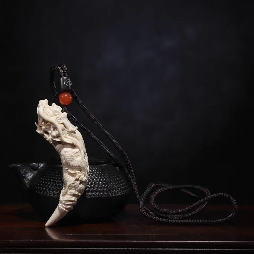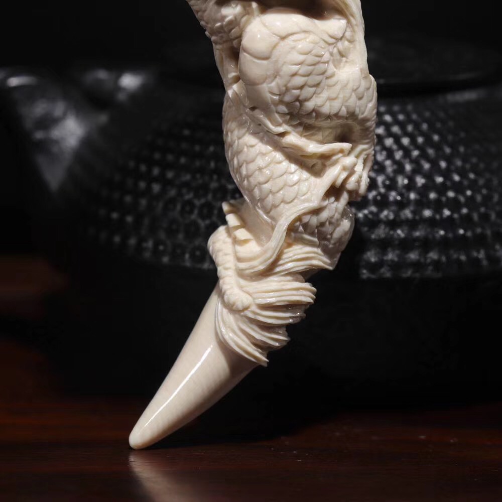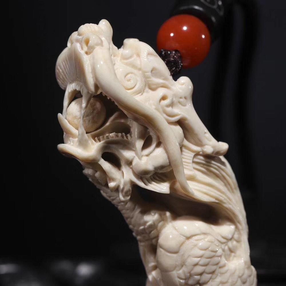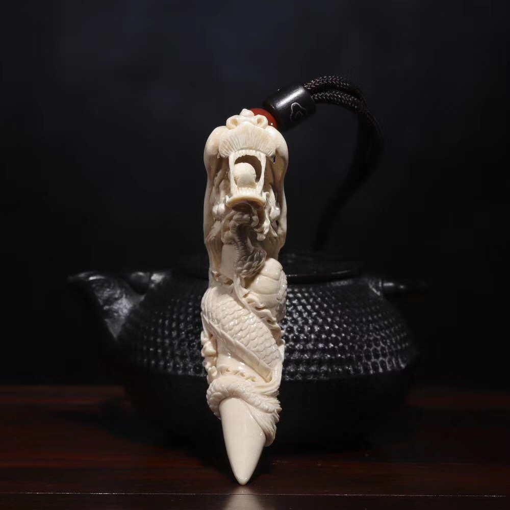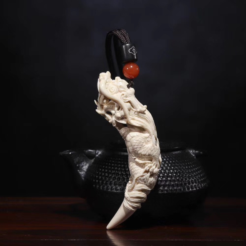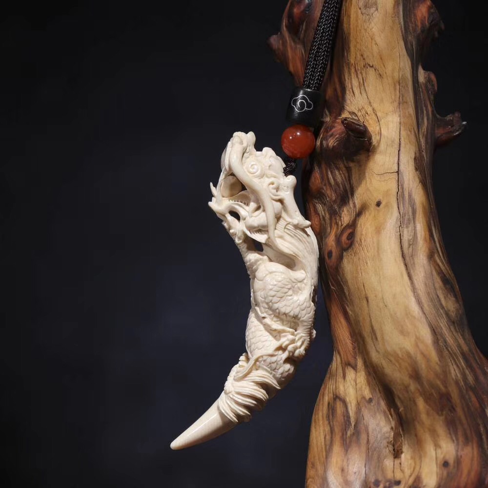 【猛犸牙雕作品】《鬼工龍牙尖》,二十年老師傅親手操刀!精選上乘猛犸冰料!紋路飽滿,質感潤澤!一只五爪祥龍口銜龍珠盤于牙尖之上,威武霸氣,十分靈動!口中龍珠可動,精細入毫,極具藝術觀賞價值!五爪龍是尊貴權威的象征!寓意能夠掌控財富,大業有所成,前途無限量!