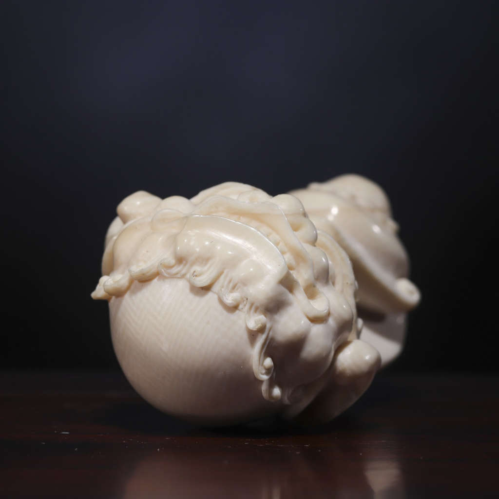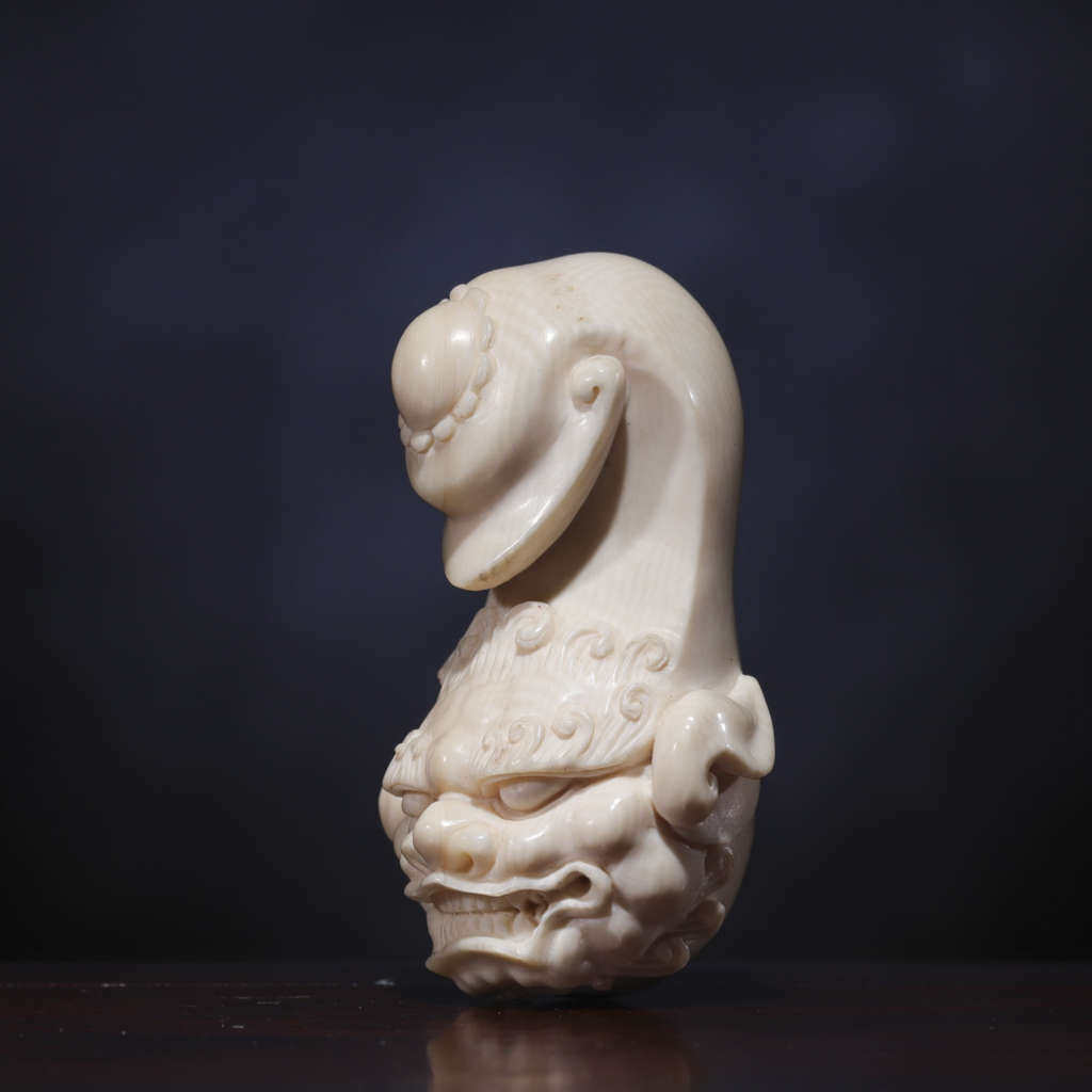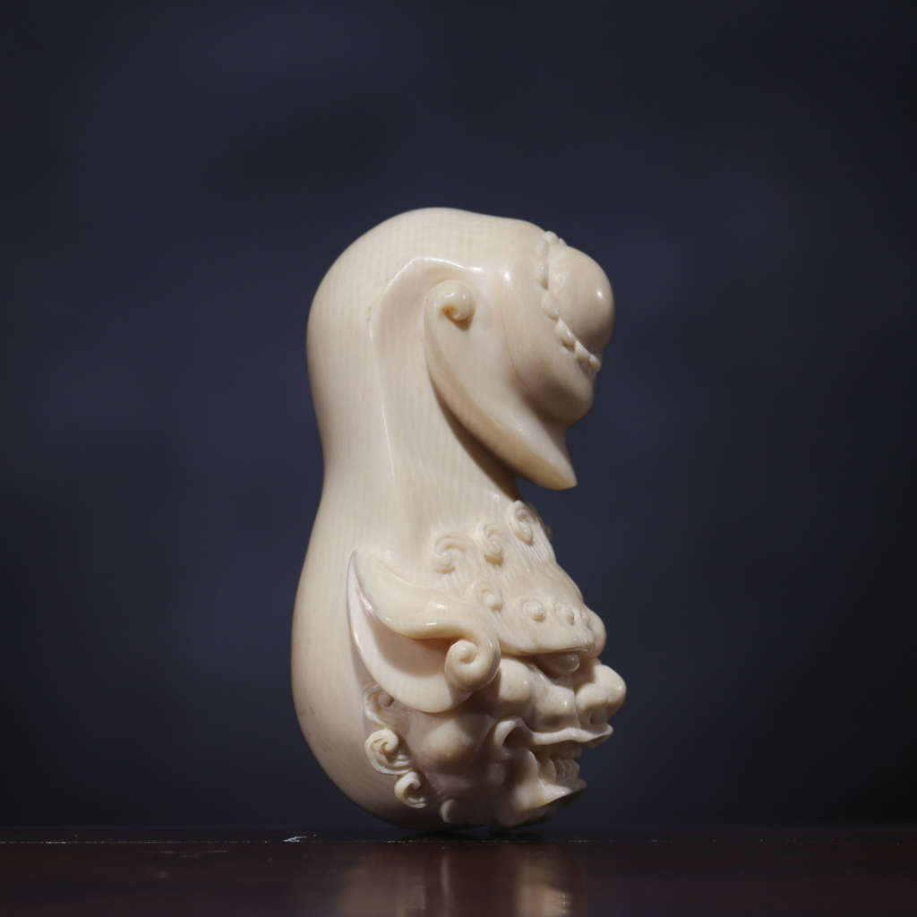 【猛犸牙雕作品】《如意貔貅》,精選上乘冰料!紋路清晰,質感水潤!資深老師傅純手工創作,設計新穎,題材極佳!貔貅與如意結合,寓意招財進寶,驅邪辟兇,萬事如意!