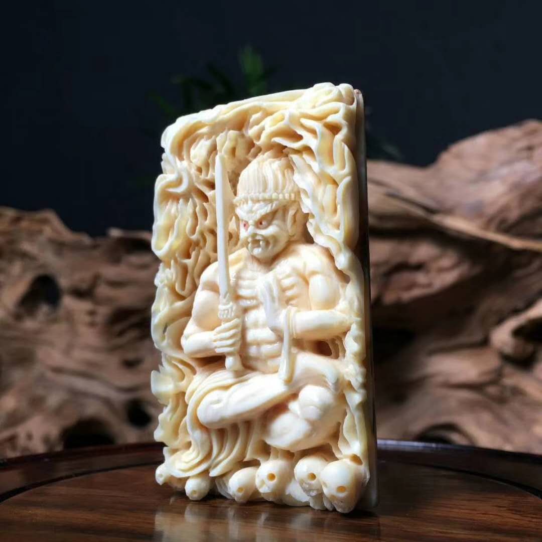 不動(dòng)明王,精工力作,大師雕琢,設(shè)計(jì)簡(jiǎn)約,浮雕立體,神態(tài)逼真,威嚴(yán)怒目。選料上乘,色澤冰潤(rùn)。尺寸:70×40×16mm,重:48.1g