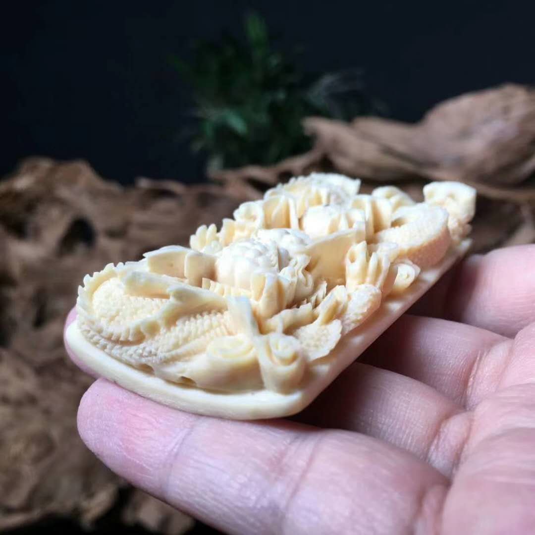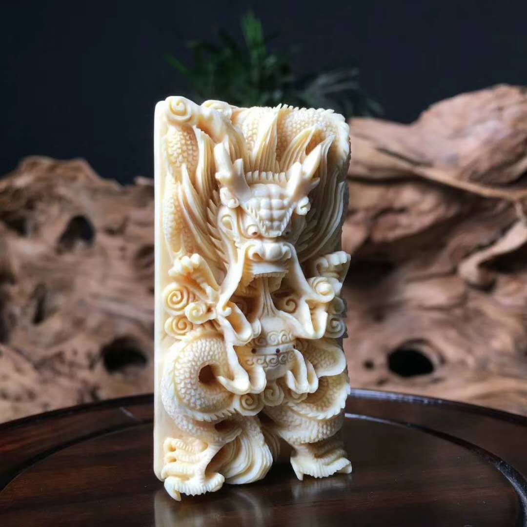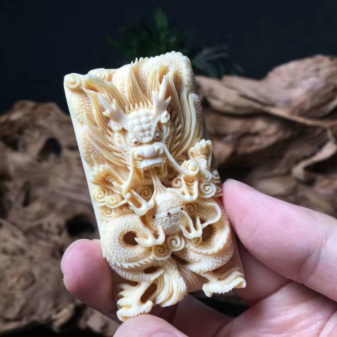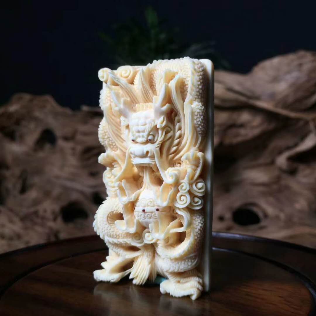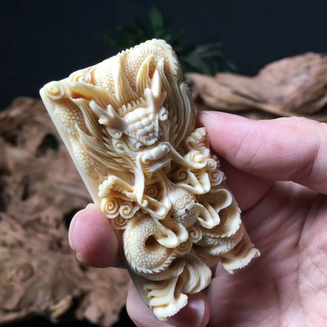 龍牌,純手工雕刻精品,精美天然黃金牙皮,精雕細刻,活靈活現,雕刻精湛,滿工好貨。尺寸:70×39×16mm,重:45.4g