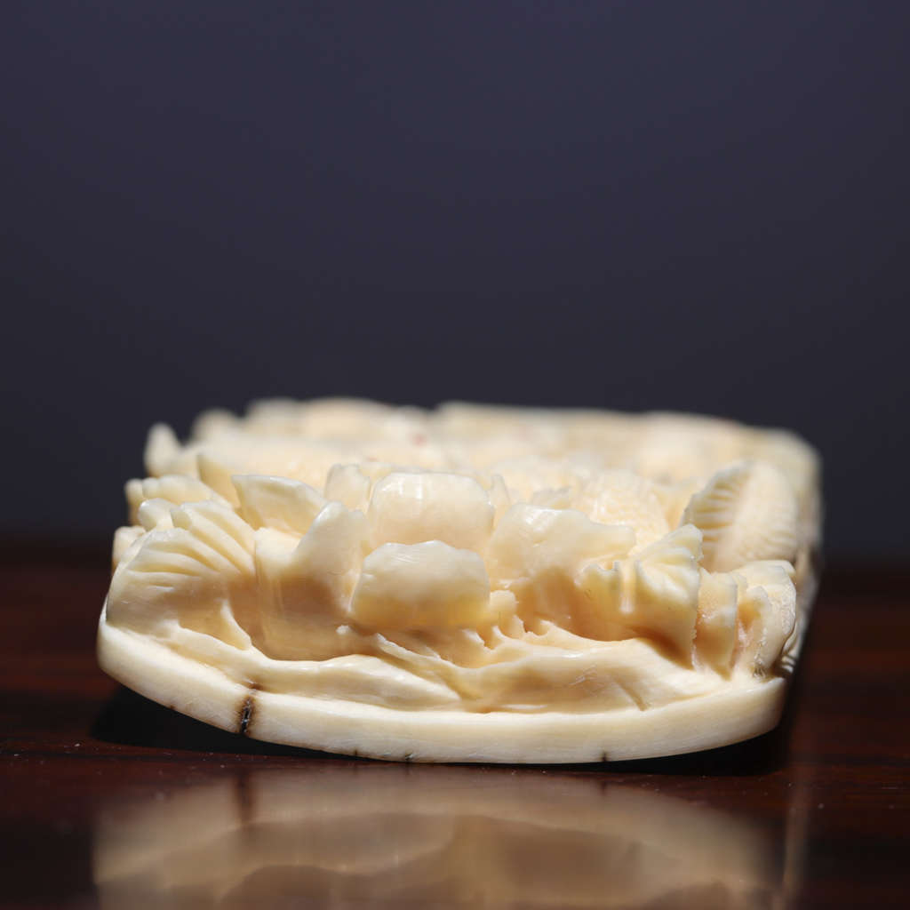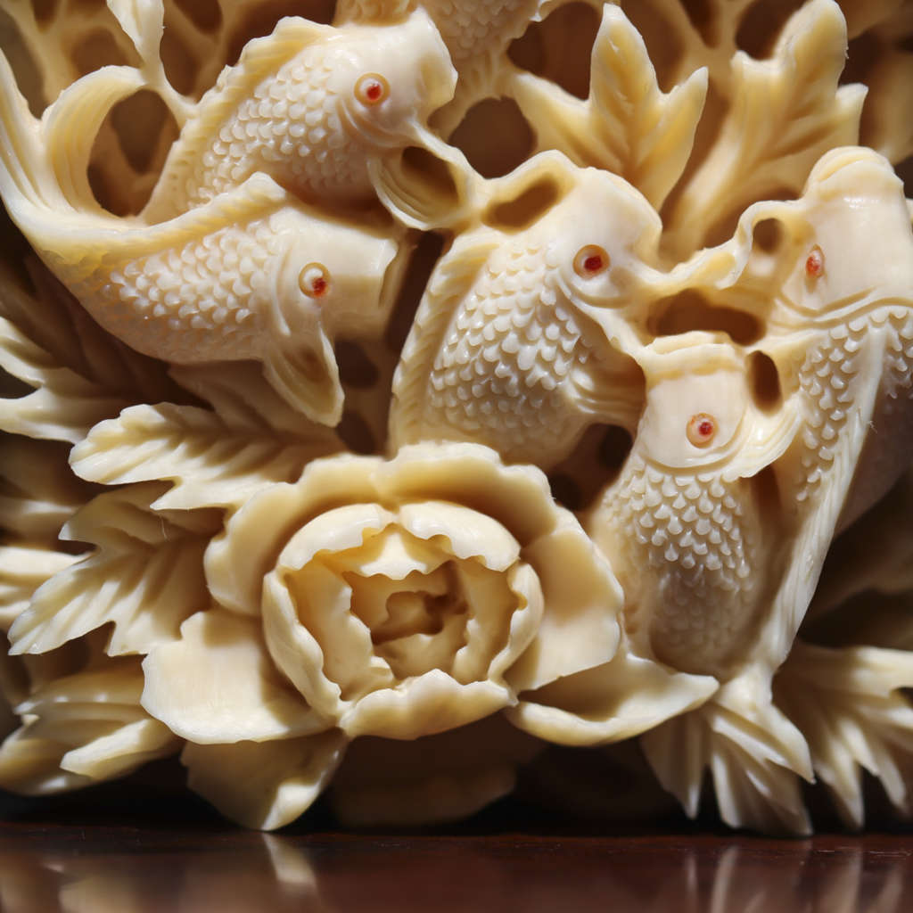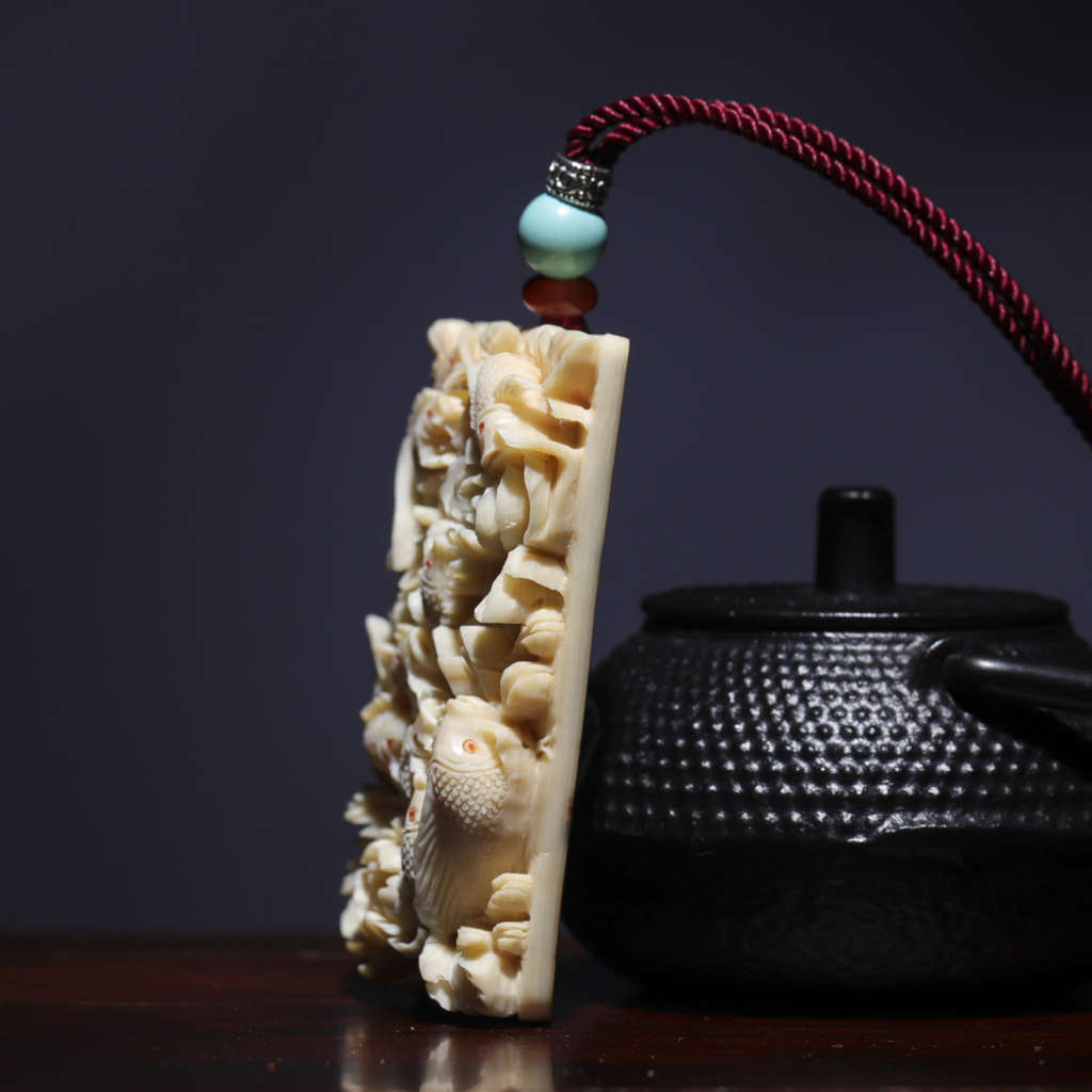 【猛犸牙雕作品】《九鯉富貴》,鯉魚牡丹皆為吉祥富貴的象征,寓意招財進寶、富貴吉祥。同時亦有鯉魚逆流前進、躍門化龍之說,寓意升官發財、飛黃騰達。精選猛犸帶皮冰料!料子潤澤,紋路清晰,老師傅純手雕刻,細節完美!