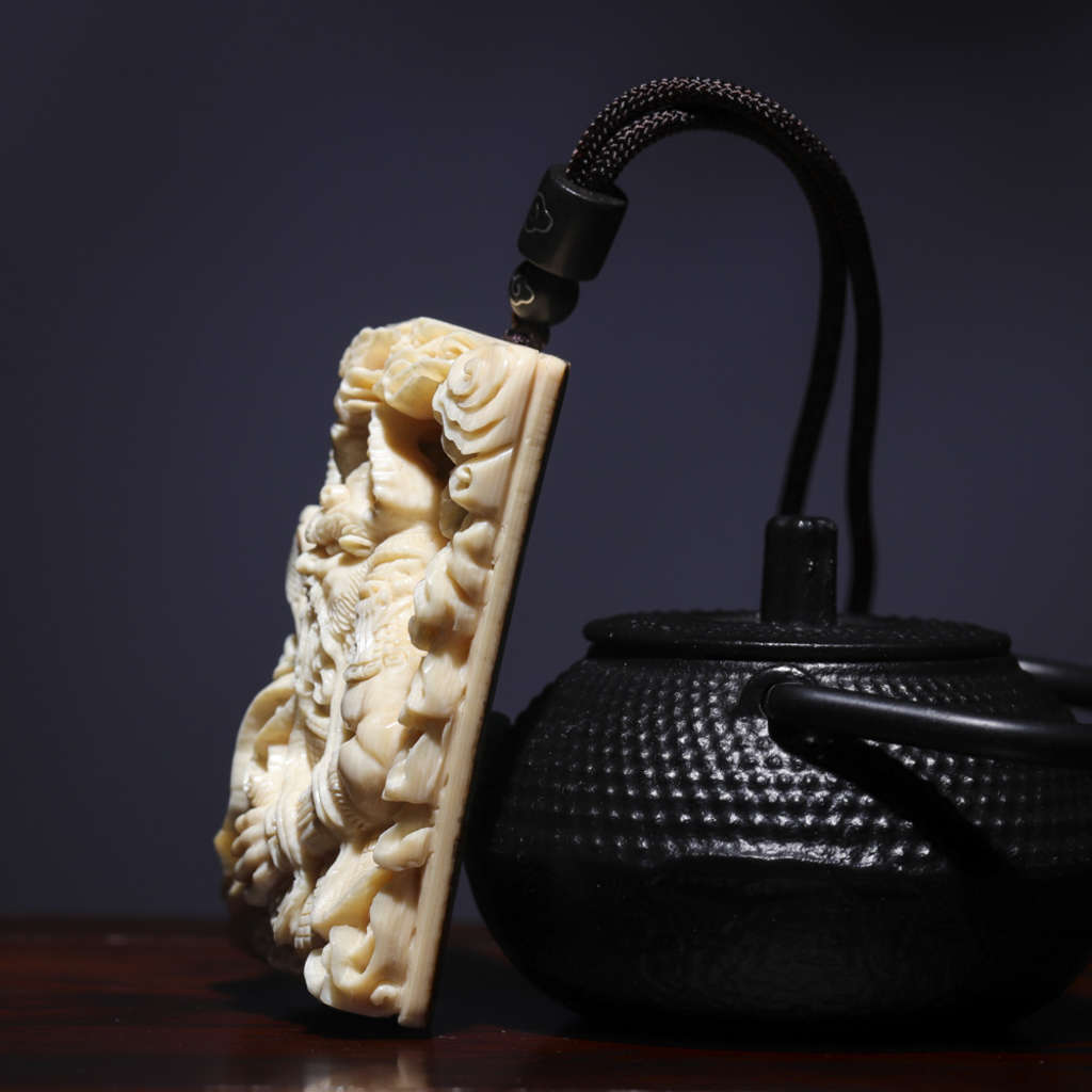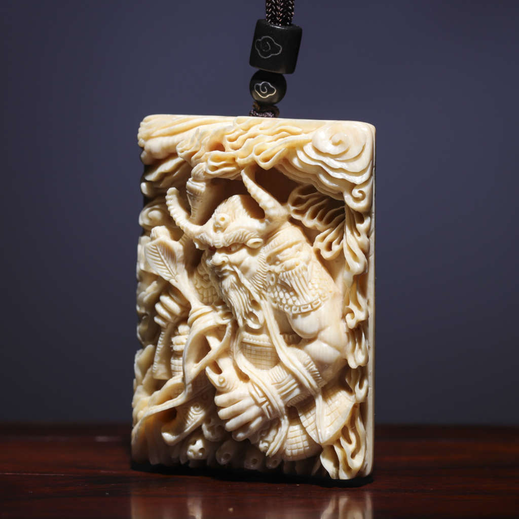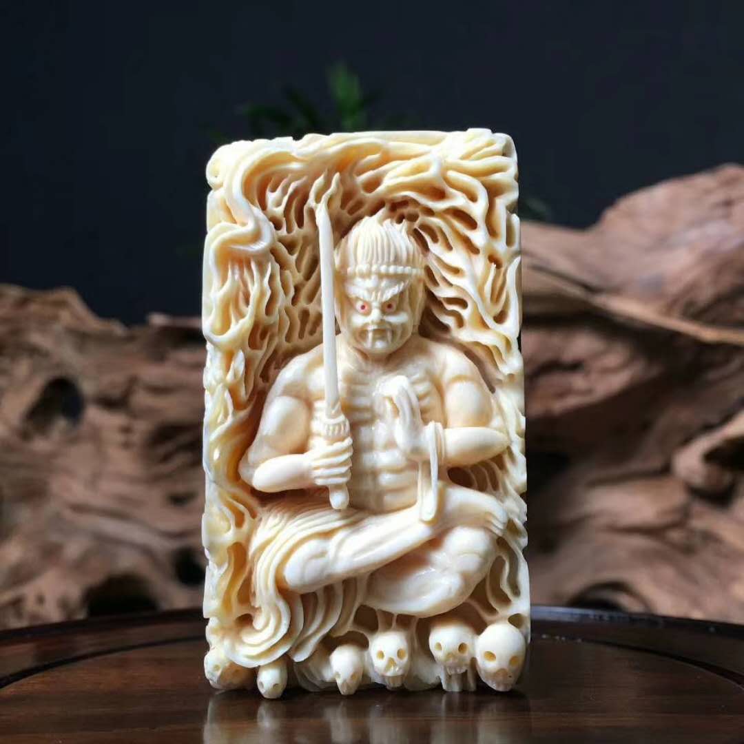 【猛犸牙雕作品】《牛魔王》,資深老師傅創(chuàng)作款!題材新穎,雕工精湛細(xì)膩。牛魔手持火把與芭蕉扇,神態(tài)傳神,意境絕佳!料子紋路飽滿,質(zhì)感潤澤,背面金皮滄桑古樸,韻味十足!