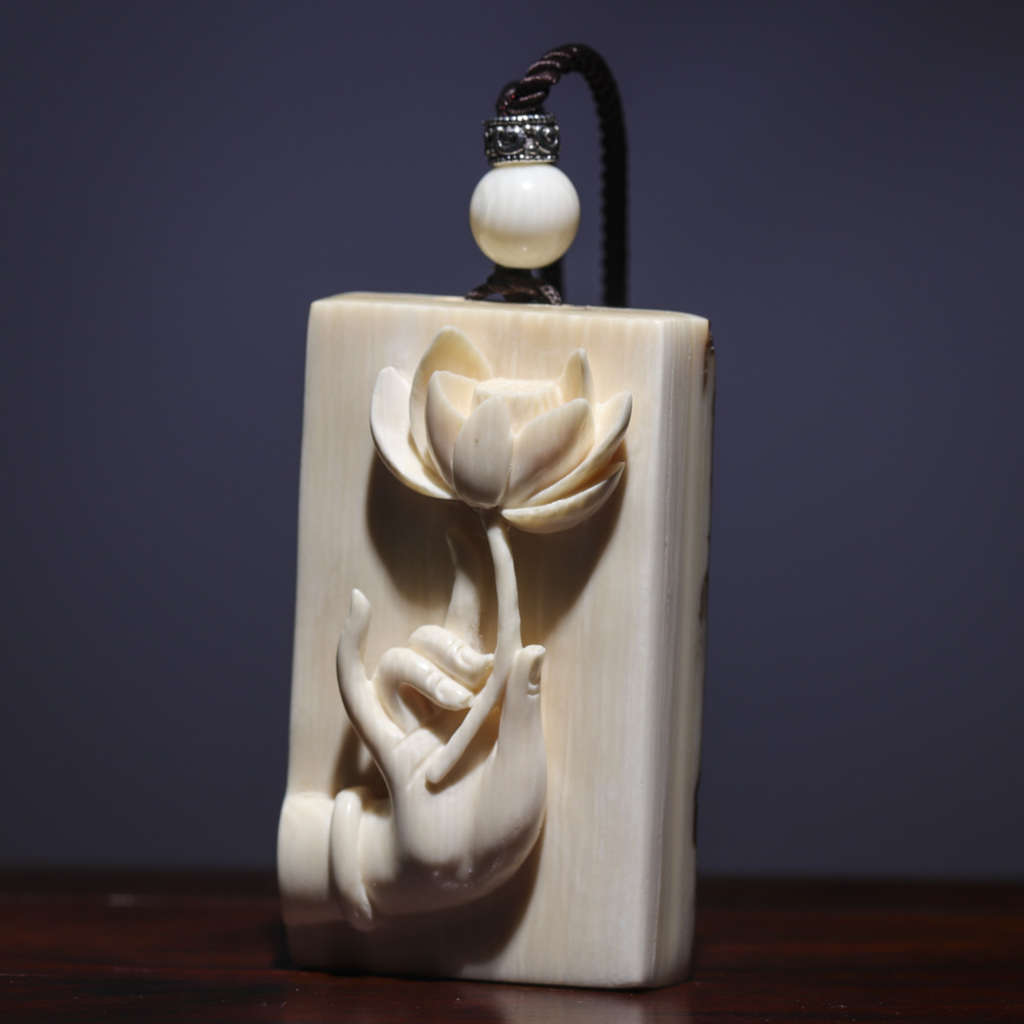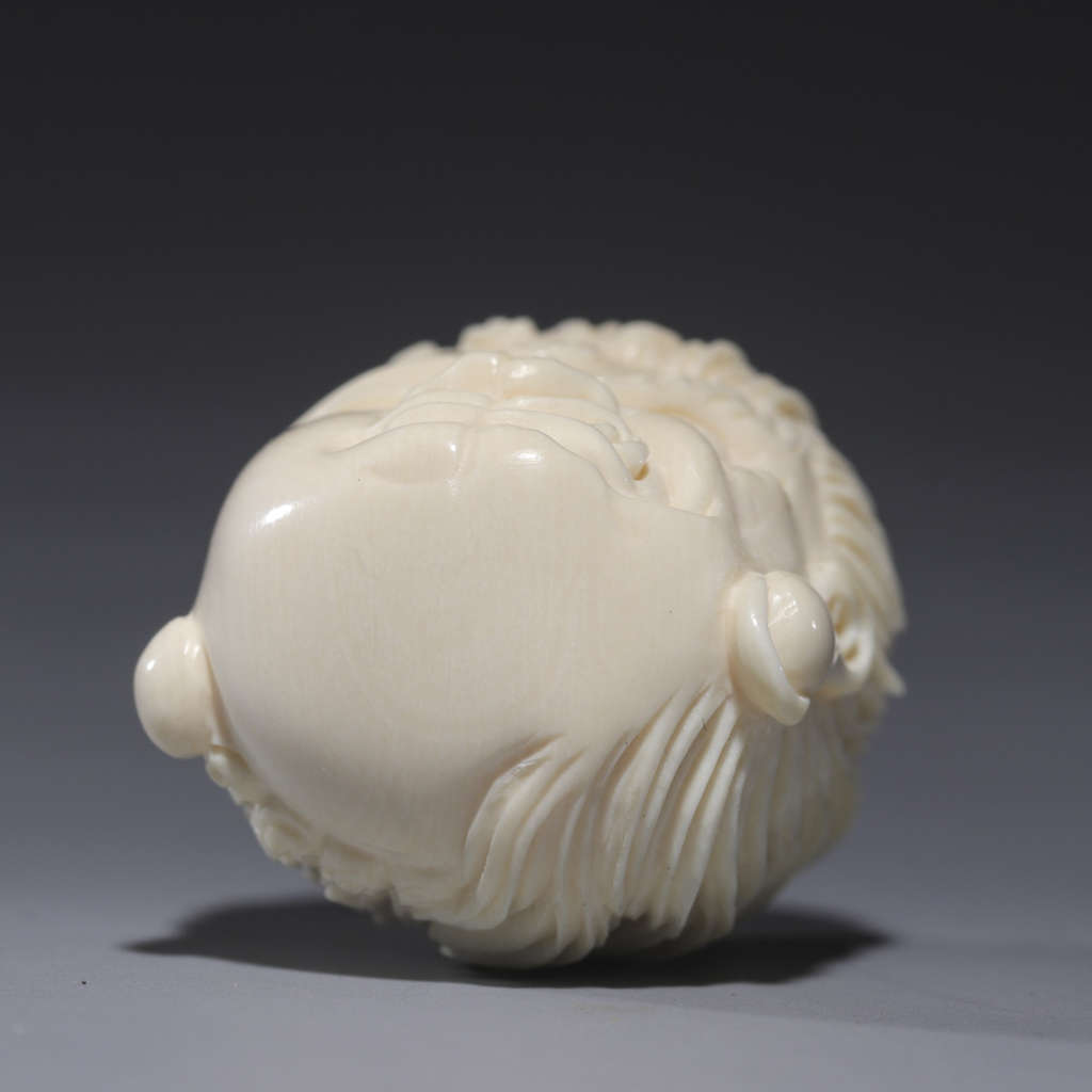 猛犸牙雕《一念之間》,精選白冰料!牙質細膩水潤,二十年資深老師傅親手操刀,細節完美!一念而從善,一念而從惡,一念而成佛,一念而成魔,遇事堅守底線,不做令自己后悔的事情! 尺寸:26×21×19mm, 克重:9.1克