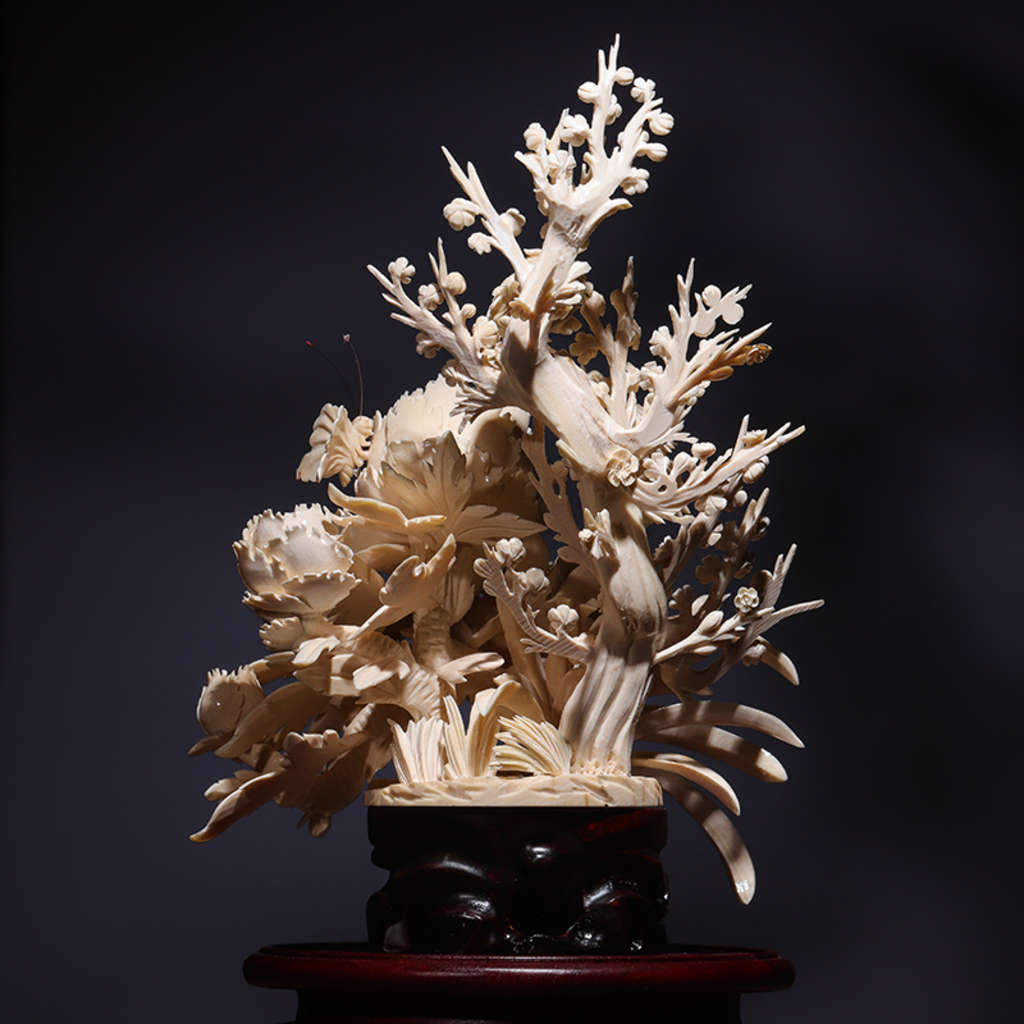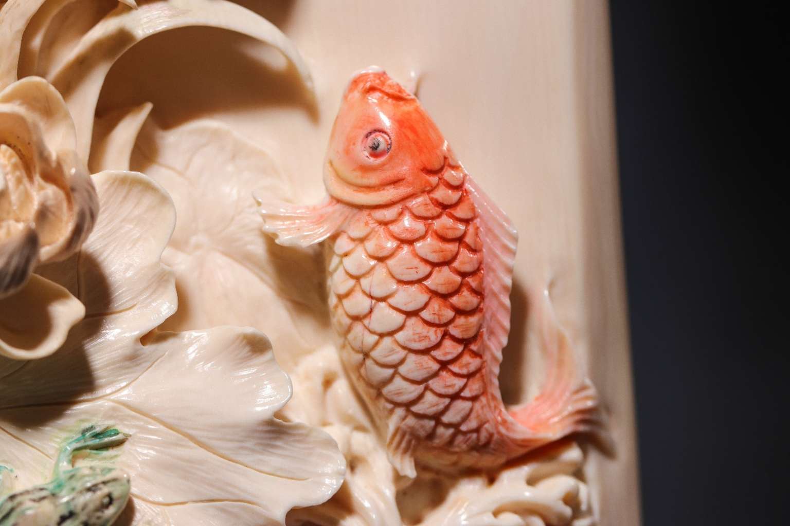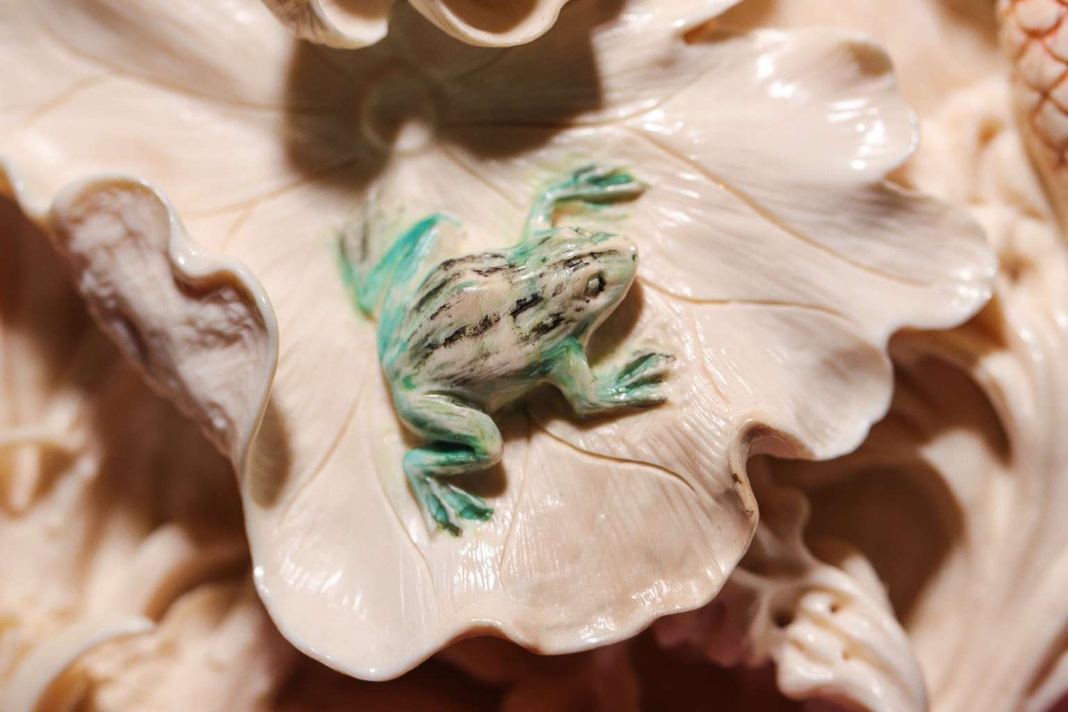 【猛犸牙雕】《荷花鯉魚擺件》荷花象征著純潔清白 鯉魚象征著富貴有余 青蛙象征著多子多福