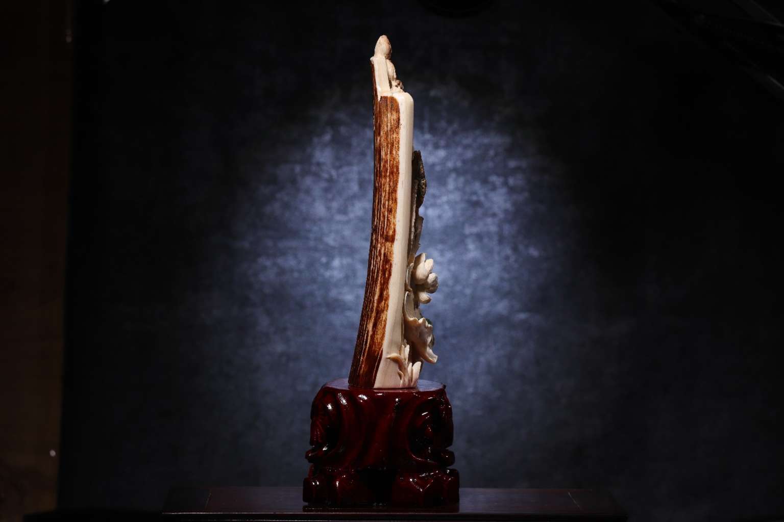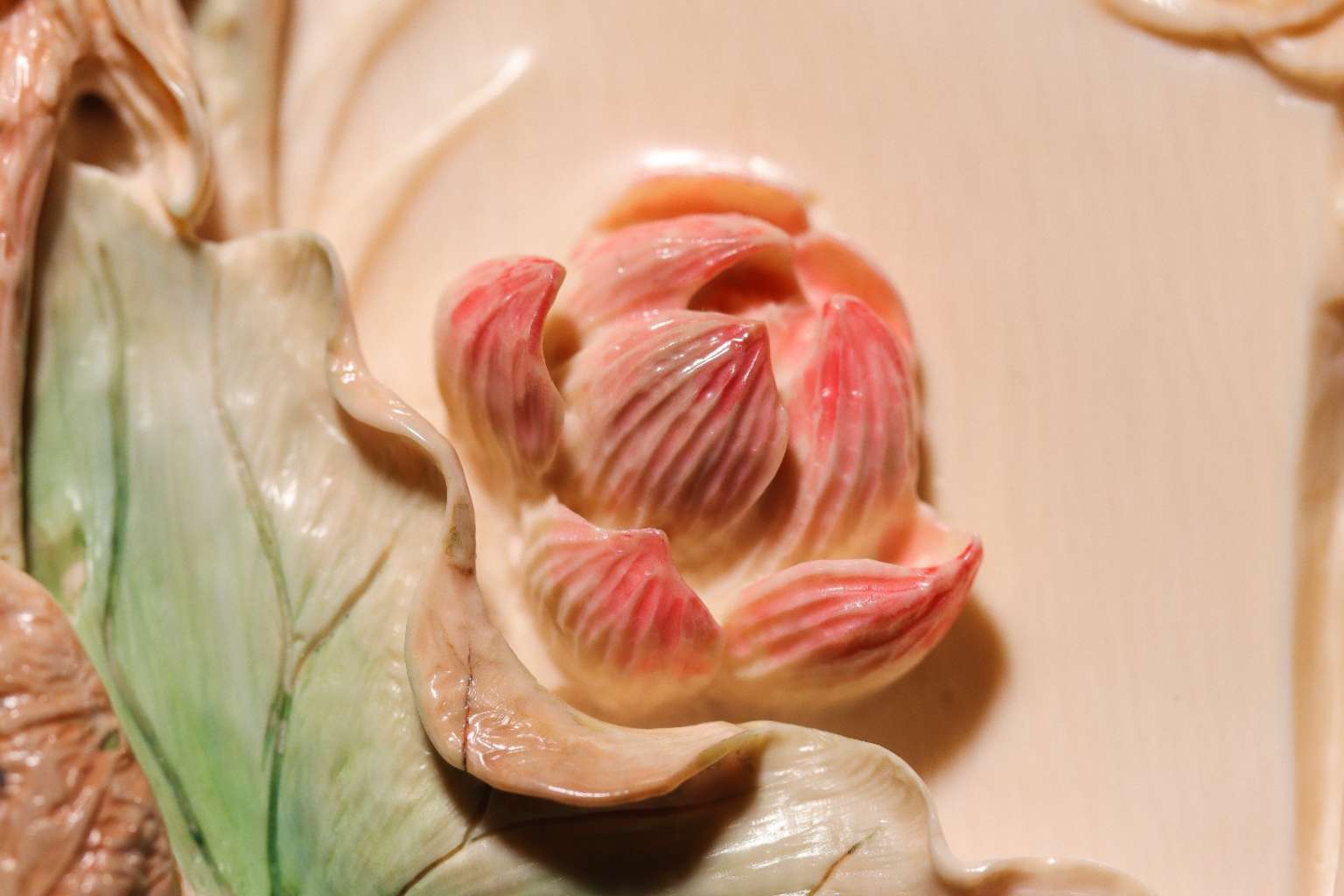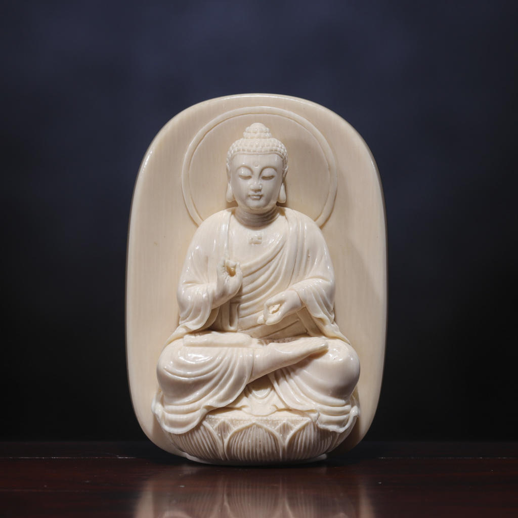 【猛犸牙雕】《荷花鯉魚擺件》荷花象征著純潔清白 鯉魚象征著富貴有余 青蛙象征著多子多福
