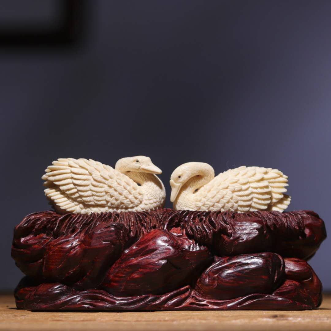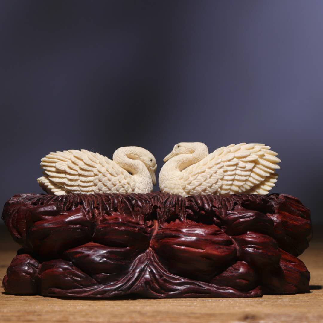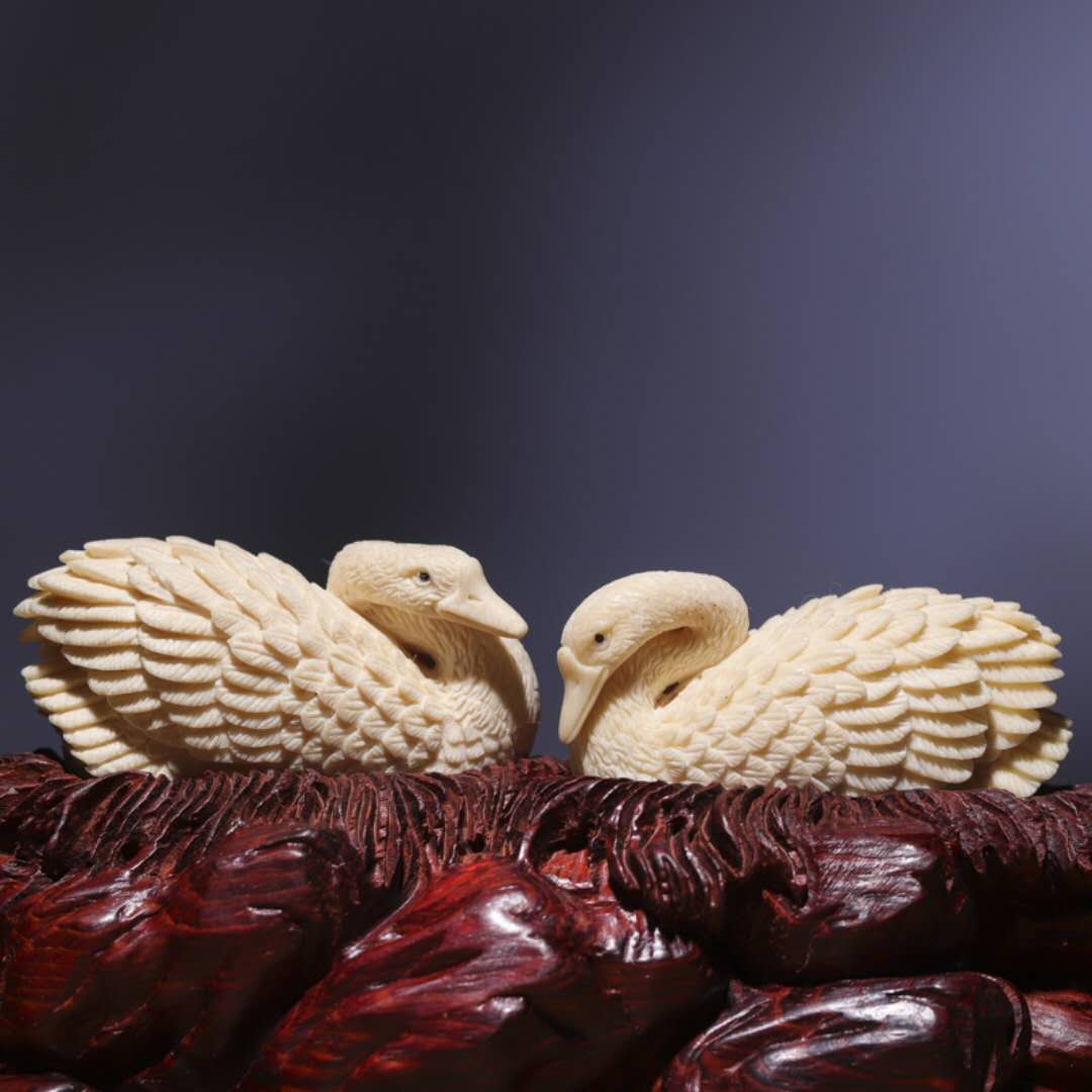 天鵝對擺 工藝精湛 雕刻傳神 “白鳥”的純潔高尚象征忠貞不渝的愛情