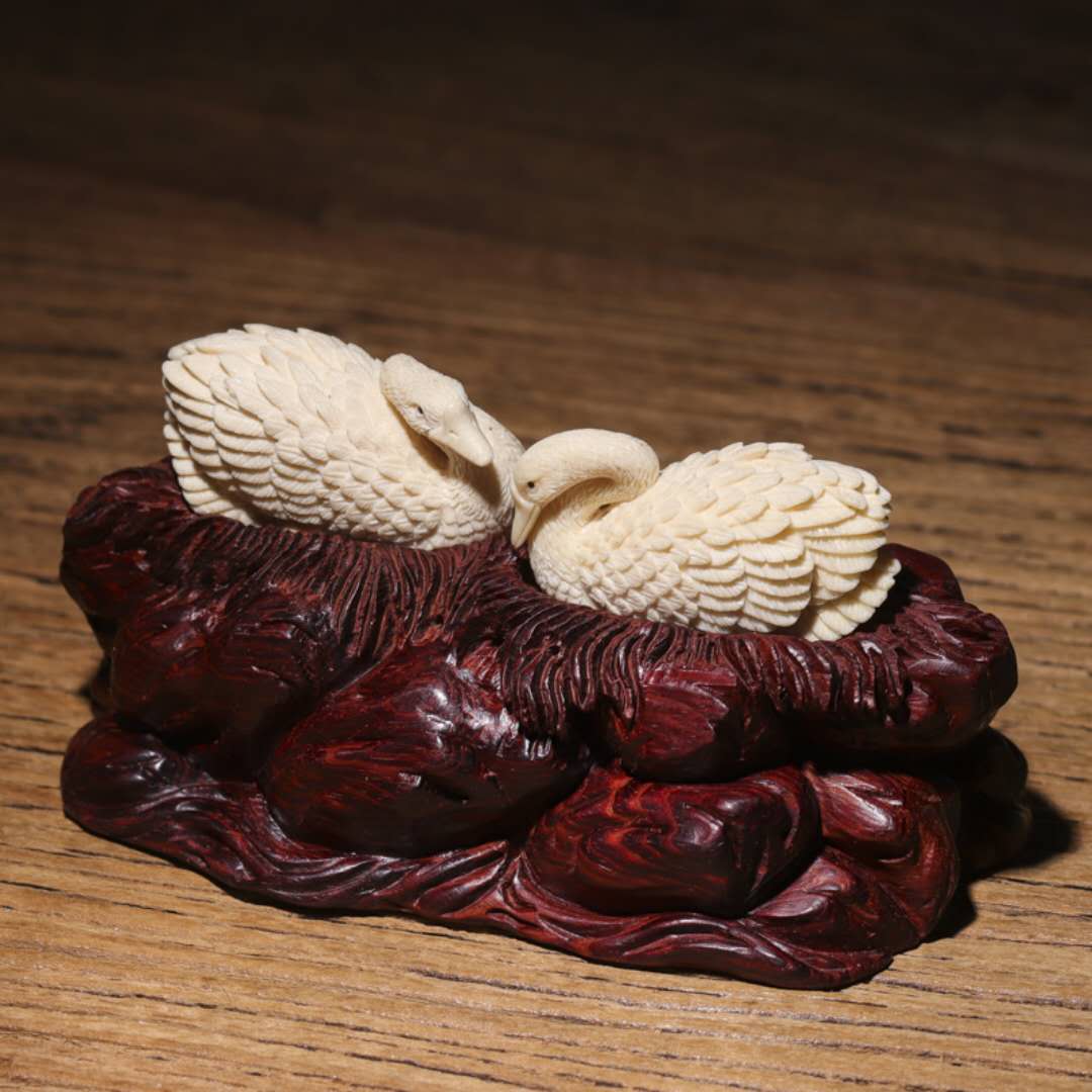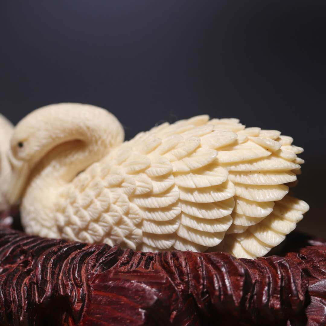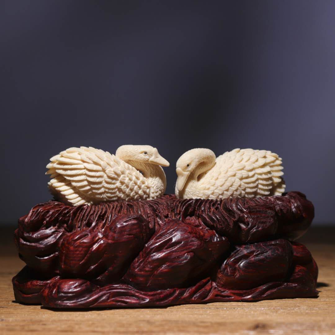 天鵝對擺 工藝精湛 雕刻傳神 “白鳥”的純潔高尚象征忠貞不渝的愛情